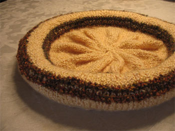 Note: this will help to line up rows and avoid puckering. *With tapestry needle and (A), whipstitch edge row to main color row before second contrast band.
