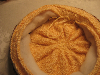 Take batting and roll lengthwise (not too tight). Place batting roll inside rolled edge. Fold edge over batting roll. Tack or place markers to hold in place as you work.